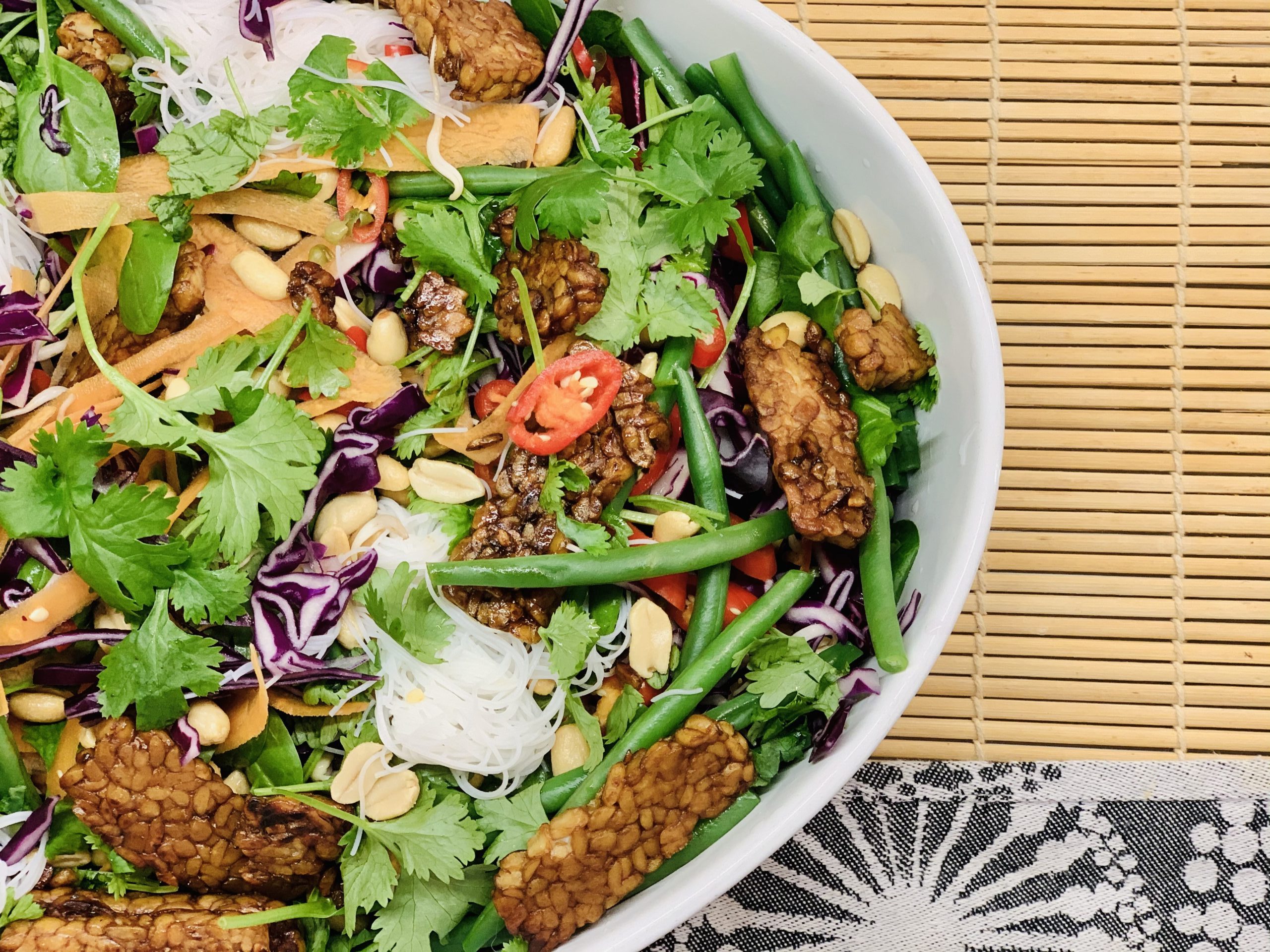 Indonesialaisen gado gado -salaatin reseptejä on viime vuosina vilkkunut tiuhaan tahtiin internetissä. Variaatioita on lukemattomia, mutta yhdistävänä tekijänä niissä on aina hurmaava tuoreiden vihannesten kirjo sekä mausteinen maapähkinäkastike. Meilläkin on useampaan kertaan tehty esimerkiksi kurpitsaversiota Kokkipottilan reseptillä. Joululomien kiireettöminä päivinä ruokalehtiä selaillessa silmään osui tällä kertaa syksyisen Glorian ruoka & viinin (9/2020) kauniin värikäs gado gado -versio, johon käytettiin kasvisten ohella riisinuudelia ja tempeä. Usean päivän jouluruokaputken jälkeen ajatus gado gadosta tuntui hyvin virkistävältä ja jääkapissa oli valmiiksi monia salaatin kasviksista, joten tuumasta toimeen. Ohjeessa käytetty tempe on keittiössäni jäänyt pitkälti muiden kasvisproteiinien varjoon, mutta nykyisin sitäkin saa jo aivan lähimarketeista. Jos tempeä ei kuitenkaan löydy, käy tofu, tai vaikka kaurapala tähän ihan yhtä hyvin. ...