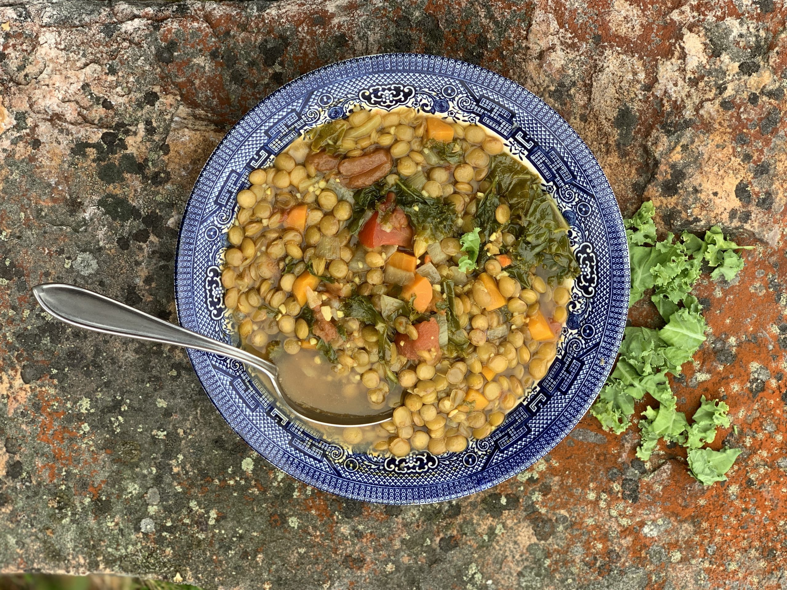 Linssikeitto on monen kodin luottoarkiruokaa. Se lämmittää, täyttää ja on yksinkertaisimpanakin versiona täynnä makua. Meillä sitä valmistuu lähes viikoittain, arki-iltojen lisäksi myös mökillä, reissussa tai kun tarvitaan jokin helppo ruoka isomman porukan muonittamiseen. Luottosopasta on lukuisia versioita, joista joka kokilla on oma paras versionsa. Minun suosikkini valmistuu tällä reseptillä, joka on yksinkertaistunut ja lähtenyt elämään omaa elmäänsä tästä Cookie and Kate -alkuperäisversiosta. Allaolevan ohjeen määrillä saat keittoa viiden litran kattilallisen, sen määrän keittelen useimmiten itse, jotta ratkoisin useamman arkipäivän ruokahuolet samalla kertaa. Kertasyömiseen kattilallisesta riittää noin kahdeksalle, santsivara huomioiden. Määrät on kuitenkin helppo puolittaa pienempää annosta varten. ...
