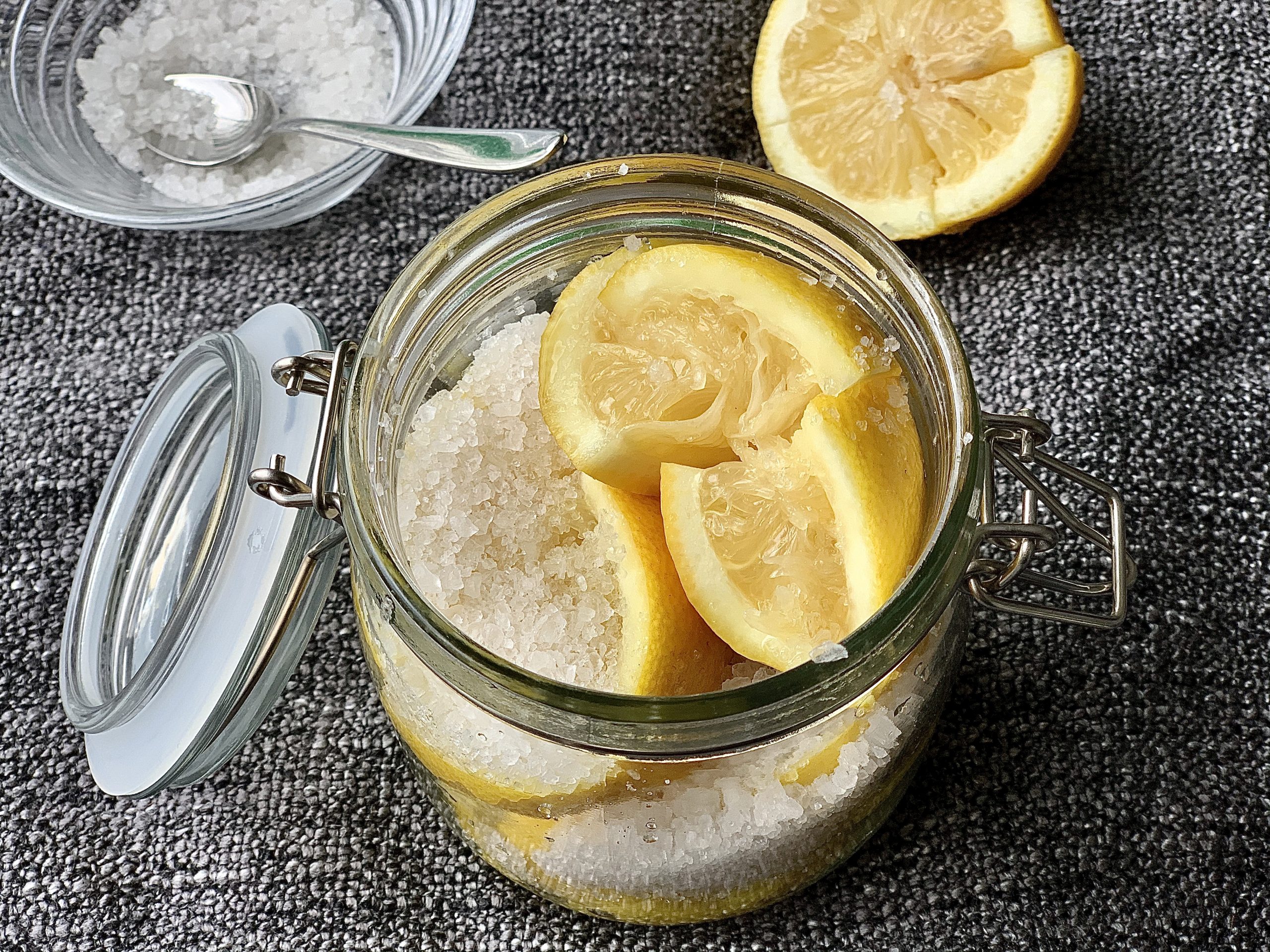 Tässä reseptissä yhdistyvät kaksi asiaa, jotka saavat sukat pyörimään jaloissani. Suola ja sitruuna. Sitruuna on aina ollut yksi suosikkiraaka-aineitani, ja viime aikoina sen käyttö tuntuu vain lisääntyneen. Laskeskelin, että taloudessamme kuluu vähintään kuusi sitruunaa joka ikinen viikko. Lisäksi olen ihan toivoton suolahiiri, joten toissasyksyisestä Glorian Ruoka & Viinistä (7/2019) löytynyt resepti oli minulle aivan ohittamaton. Yksinkertainen ohje on niin helppo, että oikeastaan onnistumiseen tarvitsee vain malttia - ja se onkin vaikeaa, sillä suolassa maustuvia sitruunoita tekisi mieli maistella ihan joka päivä! ...