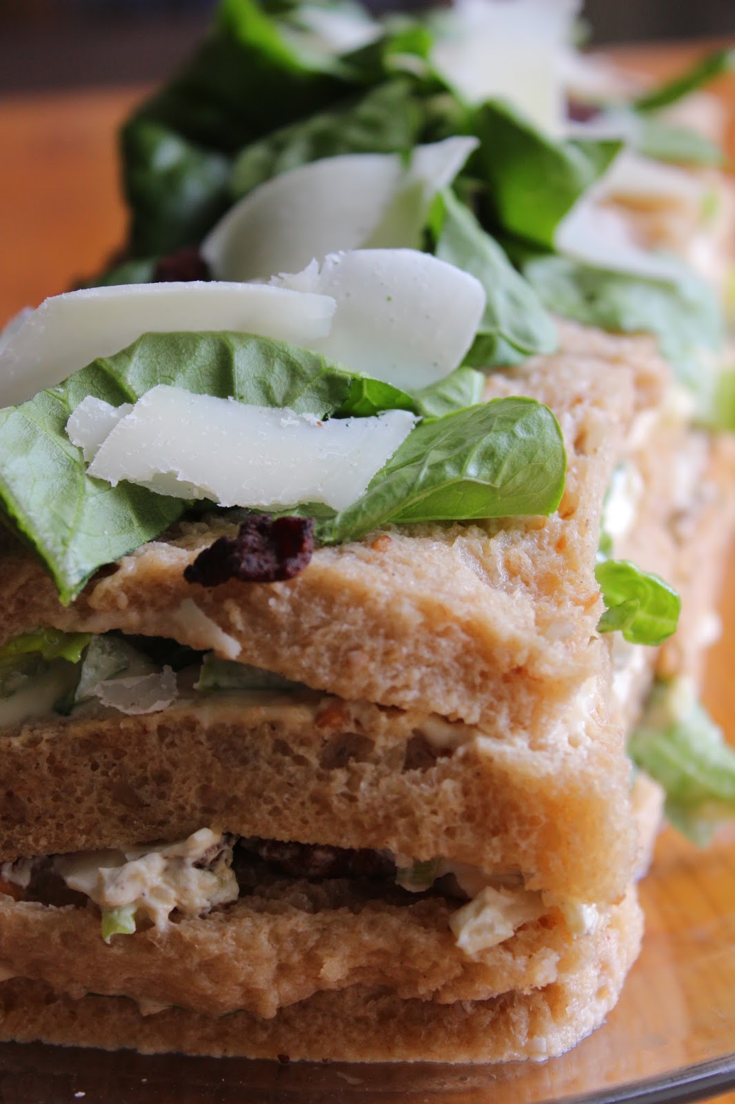 Lakkiais- ja valmistujaispäivä meni jo, mutta saattaa kesän mittaan olla rippi- sun muitakin juhlia, joissa voileipäkakku maistuu. Minä tein menneellä viikolla tällaisen voileipäkakun tyylisen jutun, joka on vähän kuin välimuoto täytetystä leivästä ja voileipäkakusta. Ja tunnustan olevani voileipäkakkujen ystävä muutenkin; välillä kuulee, että voileipäkakut ovat ummehtunut jäänne 80-luvulta ja muutenkin leipätuotteet ovat monella pannassa, mutta kummasti nuo muinaisjäänteet kerta toisensa jälkeen ovat juhlapöydän suosikkeja, tehden kauppansa usein makeita kakkuja paremmin.