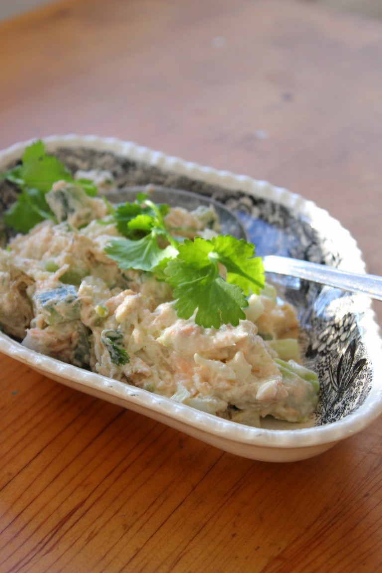 Toki välillä syötiin hyvinkin ja nautittiin esimerkiksi paikan päältä saaduista marjoista, sienistä ja linnuista, mutta joka tapauksessa, kotiin tullessa mieli teki taas vähän keveämpiä, raikkaita makuja. Ja paljon kasviksia. Siinä hengessä tein avokado-lohisalaatin, tuoreeltaan savustettua kalaa, limettiä, chiliä ja paljon kaikkea ihanaa vihreää. Kastikkeen olisi voinut tehdä erikseenkin, mutta halusin käyttää osan salaatista uuniperunan täytteenä, joten sekoitin kastikeaineet suoraan kalaan ja kasviksiin. Käytin tällä kertaa jugurttia, jotta kokonaisuus pysyisi kevyen raikkaana, ja se toimikin hyvin. Sitä tosin lorahti vähän liikaa, joten ohjeeseen olen pienentänyt määrää. Sekoittamisessa kannattaa olla varovainen, jottei käy niin kuin minulle ja kala muhjaannu liikaa. Tai ei muhjussa sinänsä ole vikaa, mutta olisin halunnut ennemmin paloja kuin tahnaa. Maussa ei silti ollut moittimista, varsinkin tuoreet jalapenot koukuttivat ottamaan lisää pariinkin otteeseen.