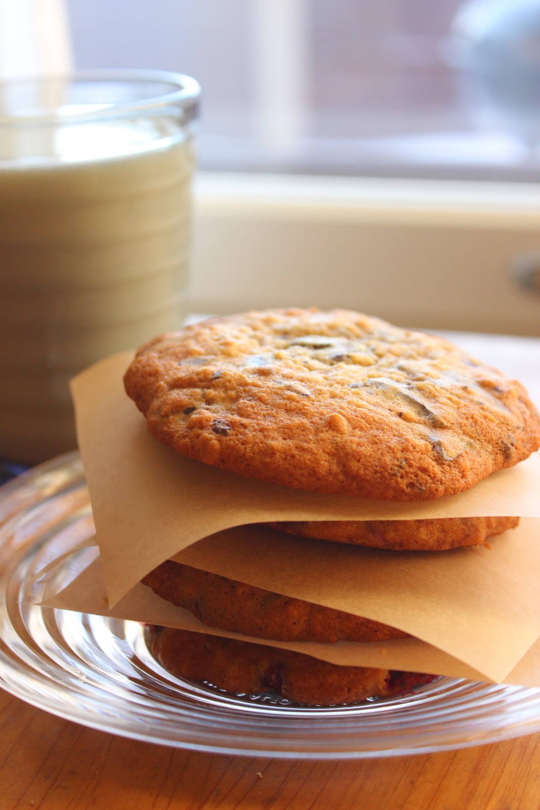 No, joka tapauksessa, keksejä tein, ja ohjeen niihin nappasin kauniista Minimalist Baker -blogista. Toki vaihdoin sattumat tummaan suklaaseen, käytin täysjyväjauhojen sijaan vehnäjauhoja ja kauraryynejä, sekä oikaisin muutaman muun mutkan mittojen ja aineiden kohdalla, mutta inspiraatiosta ja metodista kunnia alkuperäislähteelle. Ja ohjeesta sain myös ajatuksen tehdä osan kekseistä puolukkasattumilla.