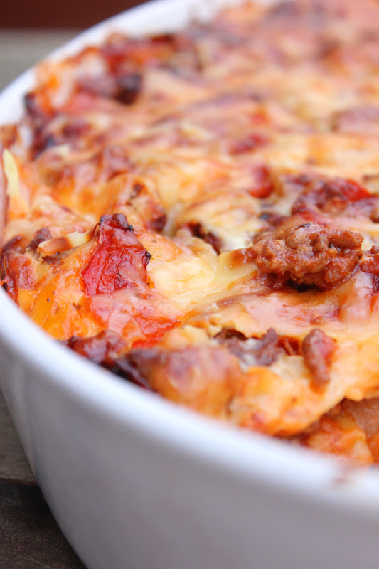 2. Valmista jauhelihakastike. Kuullota sipulia hetki pannulla, lisää sitten porkkana, jauheliha ja sienet, ja loppuvaiheessa paprika. Kun jauheliha on kypsää ja nesteet suurimmaksi osaksi haihtuneet, mausta suolalla ja pippurilla, lisää tomaattimurska ja pyre, huuhtele vielä tomaattimurskatölkki vedellä ja kaada sekin pannuun (vesi siis, ei tölkki, ehhehee). Purista joukkoon valkosipulinkynnet. Sekoita, pienennä levyn lämpöä ja jätä hetkeksi poreilemaan hieman kasaan.