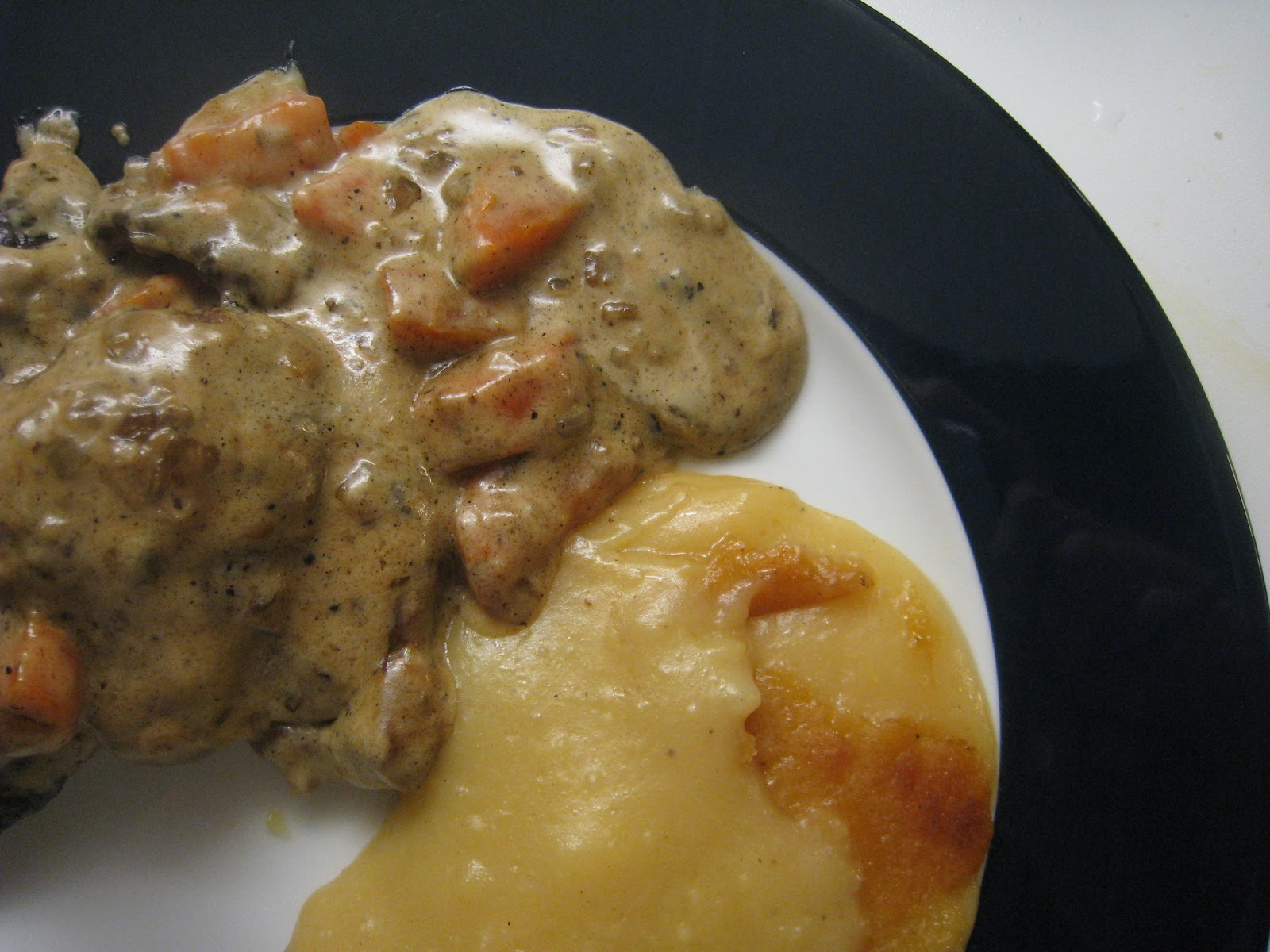 Tämä epäonninen ruoka onnistui olemaan blogin nimen veroinen. Käyttämäni paistinpannu oli “tavallista” maksakastikepannuani ärhäkämpi, käräytin maksapalat heti alkuunsa, ja sen jälkeen kaikki muu otti maksasta kauniin hiilenharmaan sävyn ja maun, jota tasoittelin sitten lorottamalla kastikkeeseen runsaalla kädellä kermaa. Onneksi isäntä on kiitollinen kohdeyleisö, johon uppoaa vähemmänkin onnistunut sapuska. Seisoja on vielä kiitollisempi, joten tämän emännän ei ilokseen tarvitse huolehtia minkään liharuuan päätymisestä roskikseen.