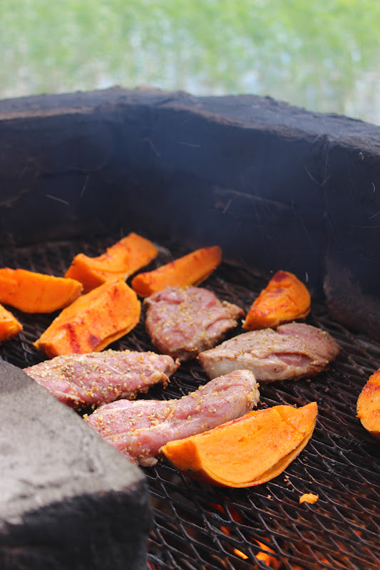 Hyvää tuli, jopa siinä määrin, että bataatit pääsevät grillauslistalle jatkossakin. Pientä haastetta oli siinä, että esikeitetystä bataatista tuppasi irtoamaan kuori grilliin ennen aikojaan, mutta siitä rouva emäntä saakin syyttää ihan vaan itseään, kun antoi lohkojen lipsahtaa vähän turhan kypsiksi ennen grilliin laittamista. Myönnettäköön myös, että keräsin ne kuoretkin sitten grillistä ja söin joka tapauksessa, joten tapahtunut vahinko ei varmaan ollut kovin suuri :)