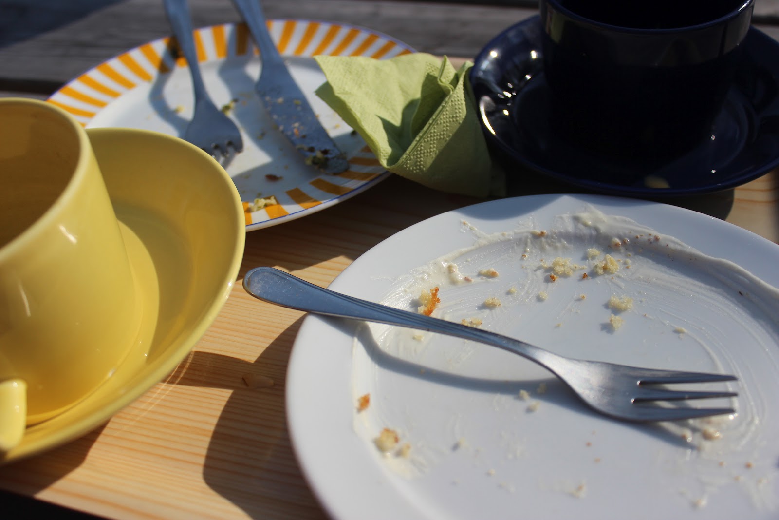 Suuruudenhulluuksissani olin ajatellut kerätä myös villivihanneksia samalla reissulla (niistä on nyt niin paljon ihania reseptejä eri blogeissa!), mutta en enää useamman tuloksettoman “tuolla on varmaan hyvä korvasienipaikka” -pysähdyksen jälkeen kehdannut ruinata vielä nokkos-, horsma- ja vuohenputkistoppeja vaan päätin käydä joku ilta pyllistelemässä rehuni lähiseudun puskista. Sen sijaan poikkesimme Fagervikin ruukin kahvilassa nauttimassa tarjoiluista ja lämpimästä kevätiltapäivästä kauniissa ruukkimiljöössä. Kitupiikin sydäntä lämmitti kahvilan hintataso, kaksi kahvia, omenapiirakkapala vaniljakastikkeella ja pinaatti-fetapiirakka nokare vihersalaattia kyljessään irtosivat alle kympillä.