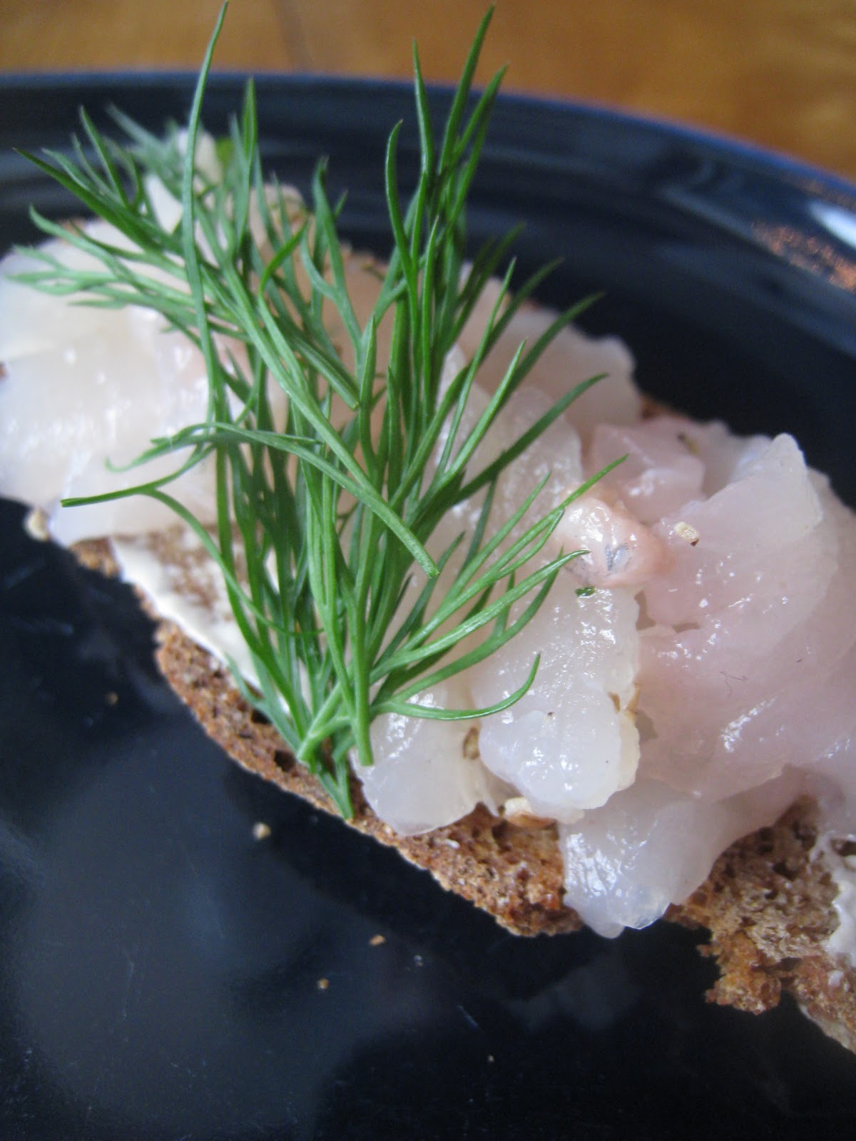 Mielenkiintoisena jäi mieleen mm. itselleni uusi tieto siitä, miksi kala sokerisuolataan eikä pelkästään suolata (asioita, jotka olen aina vain tehnyt, tosin varmasti valistuneemmat ovat tienneet jo tehdessään, miksi :). Pro Kalan sivuilla kerrottiin, että sokeri säilyttää kalan värin ja pehmeyden. Myös painon roolia mietin, olettaen sen jouduttavan prosessia, jossa suola läpäisee kalan. Suomi24:n vanhoista keskusteluista löysin sekä saman tiedon, että maininnan siitä, että paino tiivistäisi kalan sopivaksi.