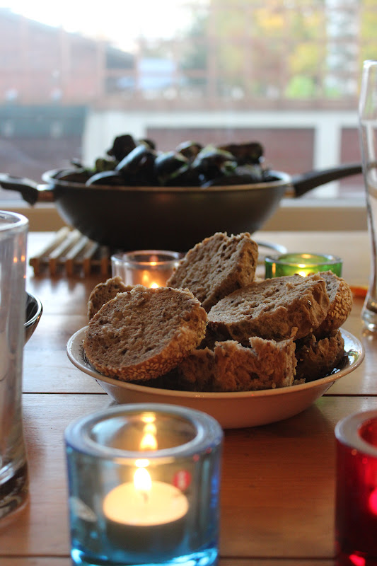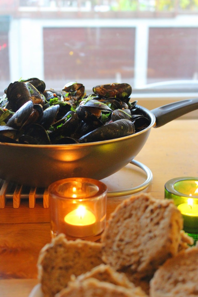 Tänään oli kuitenkin taas kokkausinspiraatio, ja se kohdistui kauden ensimmäiseen simpukka-ateriaan. Simpukoita olen himoinnut koko kesän, mutta olen yrittänyt pysyä sanonnassa, jonka mukaan niitä tulisi ostaa vain sellaisina kuukausina, joissa on (ainakin enkuksi) r-kirjain, eli syyskuusta huhtikuuhun (joissa ei suomeksi ole kummassakaan r-kirjainta).