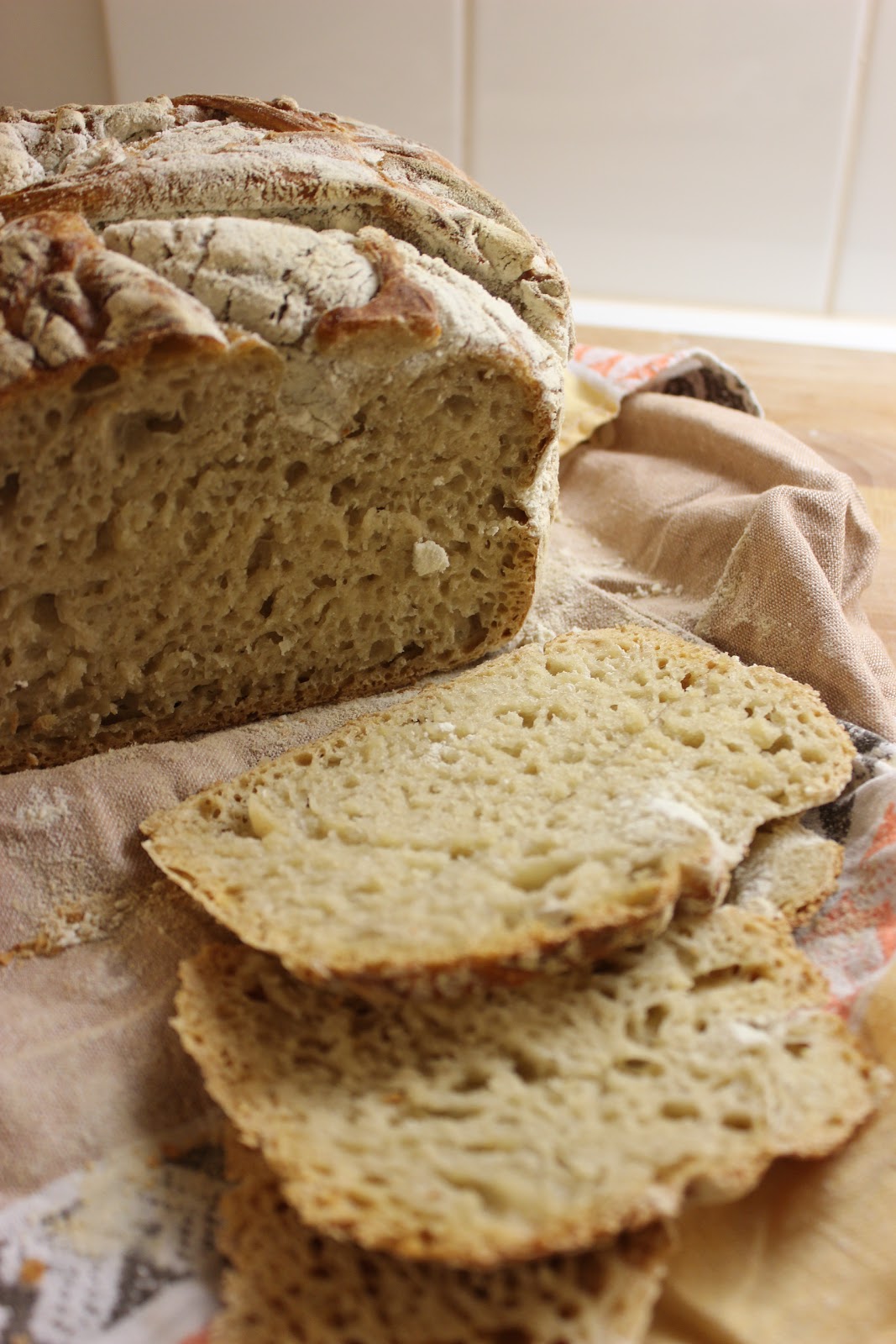 Mutta pirun hyvää siitä tuli myös möykkyisestä ulkomuodostaan huolimatta. Kattilaleivästä on saatu lukea eri blogeissa vaikka kuinka, joten olihan sitä kokeiltava minunkin. Leipä, josta tulee kuohkea ja rapeakuorinen ilman vaivaamista vaan kuulosti liian hyvältä ollakseen totta: sen jälkeen, kun puolisen vuotta sitten päätin ryhtyä leipomaan enemmän - koska kaupan paperipussileivän 3-4 euron hinta syletti - olen oppinut tekemään ruislimpuista juuri mieleisiäni, mutta vaalea leipä takkuilee vielä. Voisiko sellaista leipää olla, joka onnistuisi noin helposti?