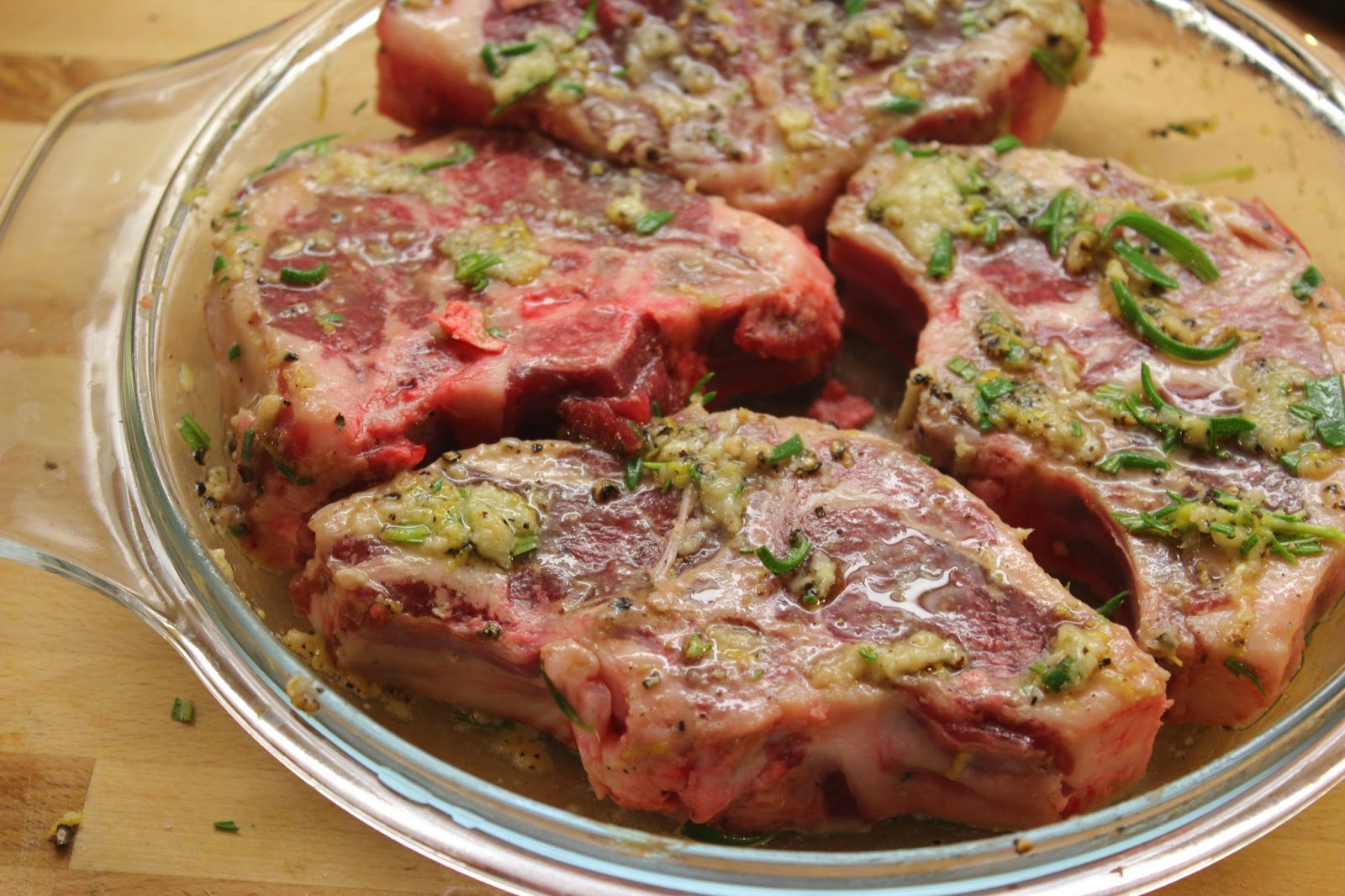 2. Pyyhkäise talouspaperilla mahdolliset luunmurut kyljysten pinnasta ja mausta ne suolalla ja pippurilla, ja nosta sitten marinadiin; kääntele niin, että marinadi tarttuu kauttaaltaan kyljyksiin. Anna marinoitua niin kauan, kuin jaksat (eli 10 minuutista vuorokauteen) ja paista sitten kuumassa pannussa muutama minuutti molemmin puolin niin, että kyljykset saavat kauniin paistopinnan.