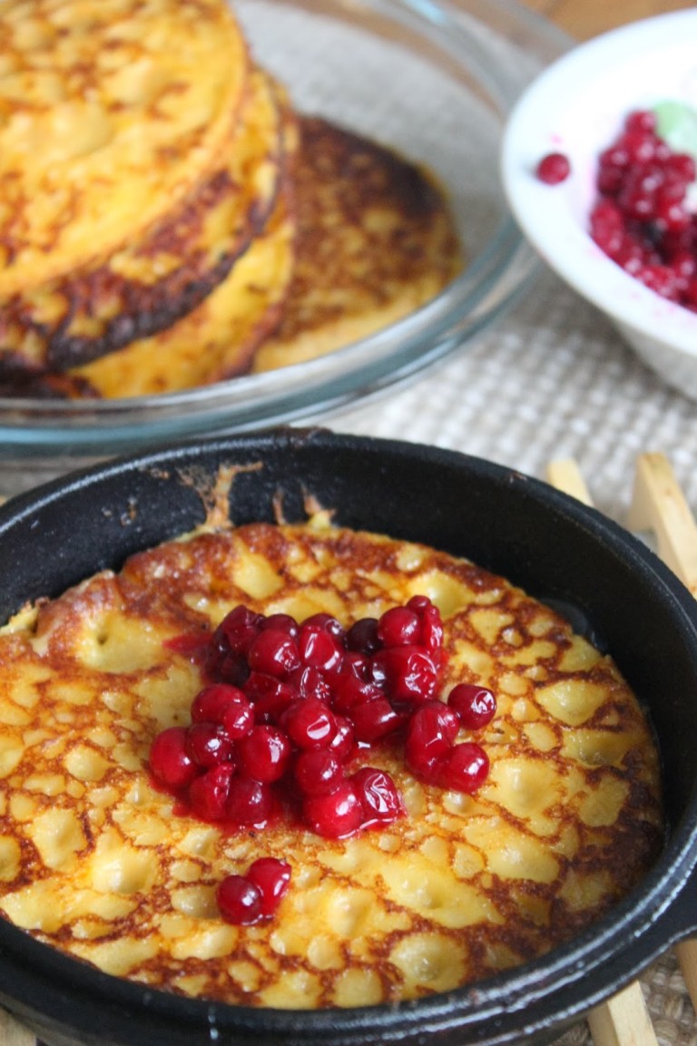 Letuille meinasi muutenkin käydä huonosti; tein taikinan jo edellispäivänä mutta paistaminen ei sitten huvittanutkaan, joten jätin sen jääkaappiin muhimaan seuraavaan päivään. Hieman pelkäsin, että sinne taikina jää kunnes kävelee itsekseen kaapista ulos, mutta onneksi sain aikaiseksi paistaa satsin aamupalaksi. Vallan hyviähän lätyt olivat ja sopivat erinomaisesti aamiaisruuaksi. Me söimme lettujen kaverina pelkkiä puolukoita, mutta aamiaispöydässä kun oltiin, tuli mieleen että pekoni olisi ollut ihan mainio kaveri myös.
