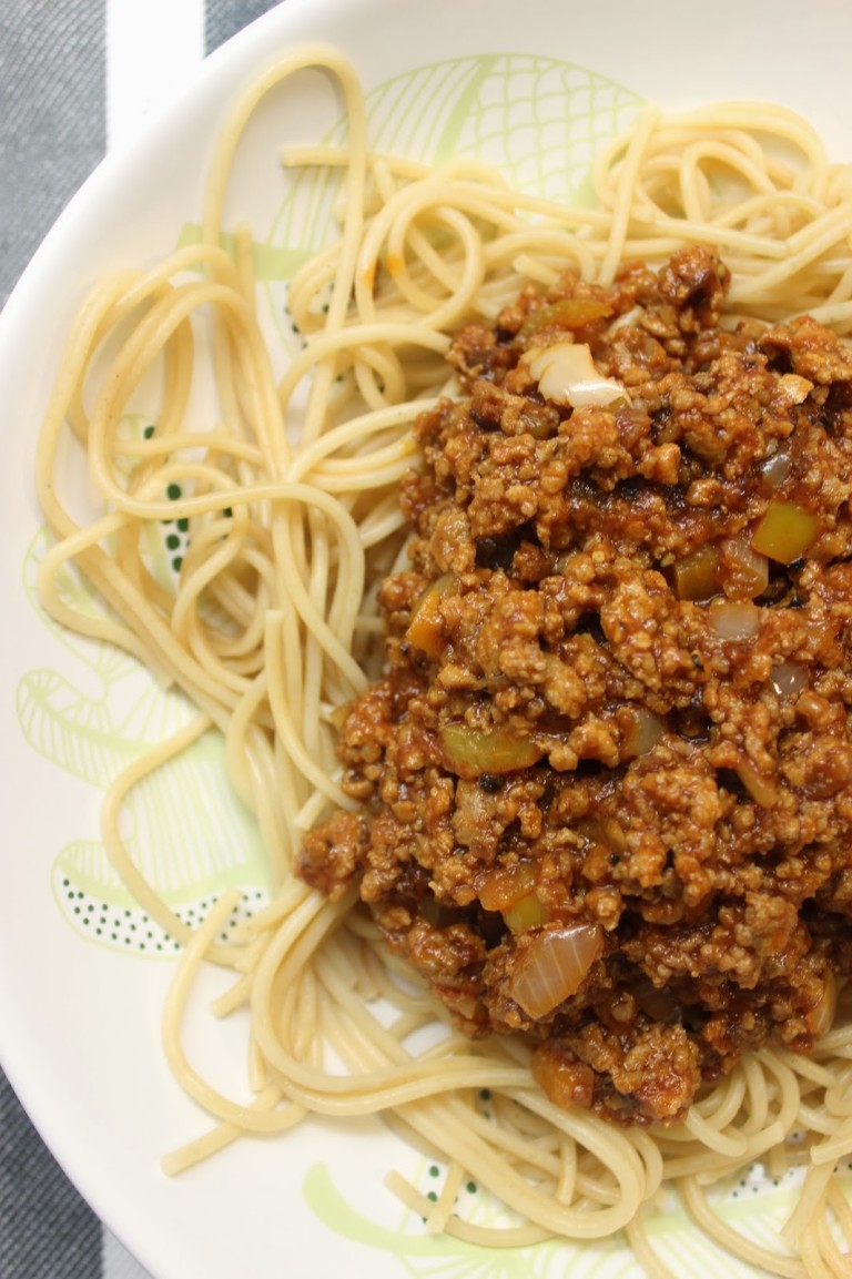 Pasta bolognese eli spagbol on kuitenkin melkoinen tomaattiklassikko, joten pääsköön se mukaan viimeiseksi tomaattireseptiksi, huolimatta siitä, että yleensä teen sen ihan tomaattipyreestä. Kastikkeen voi valmistaa myös pitkän kaavan mukaan ja suuremmalla pieteetillä, mutta maistuvaa arkiruokaa saa ihan yksinkertaisistakin aineksista. Meillä tyypilliseen, todennäköisesti sangen vääräoppiseen versioon, käytetään naudan sijasta maukasta (ja rasvaista…) possun jauhelihaa, savupaprikaa, chiliä ja paljon valkosipulia. Kastikkeen valmistuksen voi aloittaa, kun laittaa pastaveden tulille, jolloin soosi on valmista yhtä aikaa pastan kanssa.