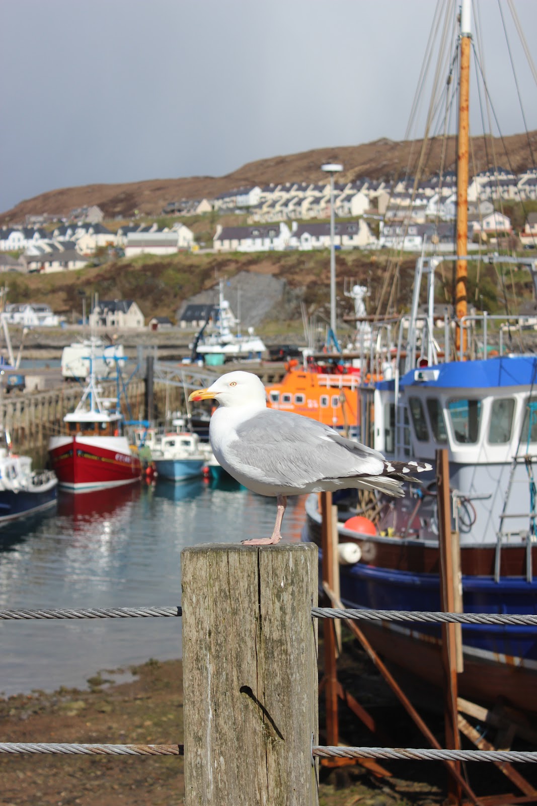 Mallaigin Seafood Cafesta avautuivat näköalat kalastuspaatteja isännöivään satamaan, joten heti ravintolaan mennessä tuli olo, että ruoka taitaa tulla melko läheltä. Söimme lounaan pitkän kaavan mukaan; isännälle alkuun skotlantilaisklassikko cullen skink (meikäläisittäin kalakeitto) ja minulle kylmäsavulohta. Pääruuaksi isäntä otti grillattua kampasimpukkaa, merikrottia ja jättikatkarapuja parsa-vihnnespedillä, ja minä päivän erikoislistalta grillattua lasikampelaa (megrim, tilattaessa ei ollut tosin hajuakaan, mikä otus on kyseessä).