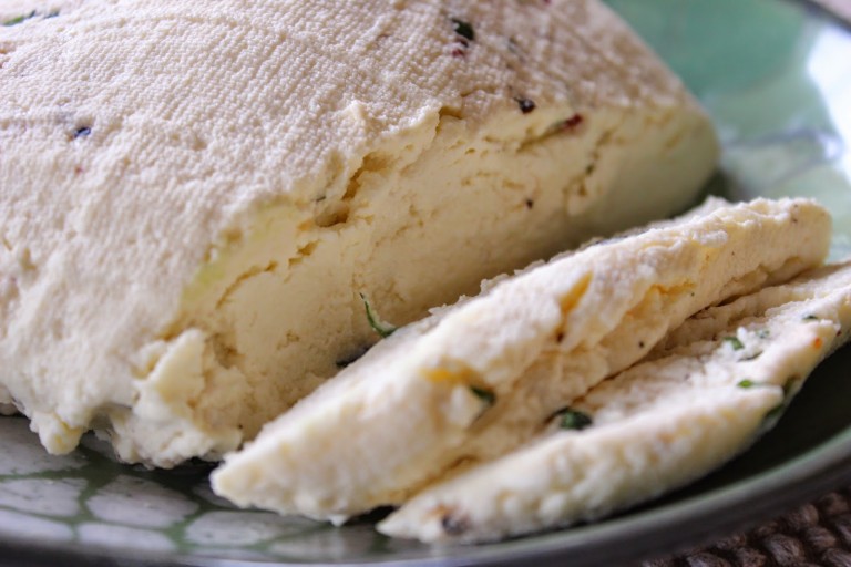Juuston perusohje on Kotilieden mutta mausteita muuntelin, koska kotona oli basilikaa ja minulla oli käyttöä pippurein maustetulle juustolle. Ja määrät ovat alkuperäistä ohjetta hieman pienemmät, koska talouspiimää ei myyty litran tölkeissä. Helppoa tekeminen kuitenkin oli, ja harsokankaalla vuorattu siivilä oli oikean juustomuotin puutteessa ihan pätevä väline juuston valutukseen. Lopputuloksena syntynyt juusto oli maukas mutta todella lempeä, eli suolaa ja pippuria voisi laittaa aika paljon reilummallakin kädellä. Prosessissa ehti syntyä muutama lisäidea maustamiseen, ehkä ensi kerralla voisi laittaa pähkinöitä, tai appelsiininkuorta ja kuivattuja karpaloita, tai piparjuurta… vain mielikuvitus on rajana!