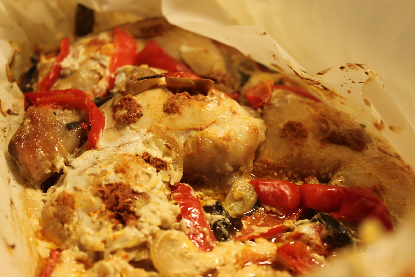 Paperissa höyrytetyt kanankoivet punaisessa currykastikkeessa (2-3 hengelle)