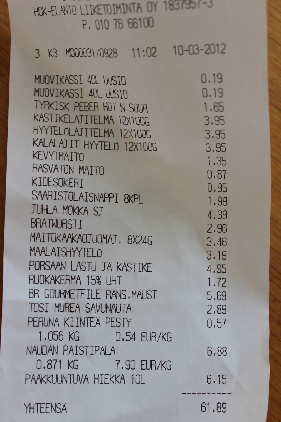 Kulinaarimurulan järjestämä maaliskuun ruokahaaste mielessä kävin minäkin hiljattain penkomassa lähikaupan roskiksen toivoen, että käteen osuu muuta kuin jäätelöpaperi tai syöty purkka. Kiehtova haaste jälleen kerran, ja herätti ajatuksia siitä, kuinka uteliaita me tosiaan olemme toistemme syömisistä - minä ainakin olen ;) Ja jotkut toiset vielä uteliaampia, alkuvuodesta muistan erään miehen kaupan kassalla kommentoineen, josko meidän perheen pitäisi hankkia lehmä, kun oli niin monta maitotölkkiä. Voi hyvänen aika!