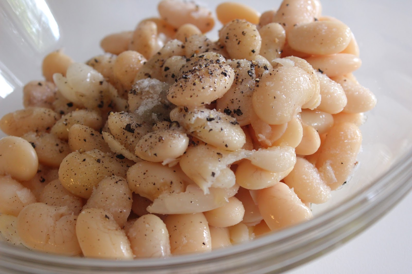 1. Jos käytät kuivattuja papuja, huuhtaise ne edellisenä iltana ja jätä likoamaan yön yli. Huuhtaise vielä liotetut pavut ja keitä niitä reilun tunnin ajan, kunnes pehmenevät. Valuta ja anna jäähtyä huoneenlämpöisiksi. Purkkipapujen kanssa voit jättää tämän vaiheen väliin ja aloittaa seuraavasta kohdasta.