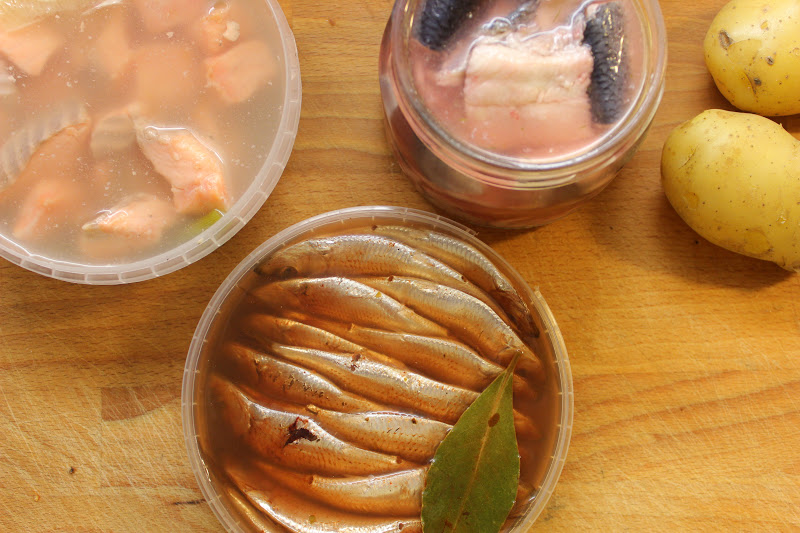Markkinoilla oli hyvässä ja pahassa hyvin perinteistä (ja perinteinenhän tapahtuma onkin, kun lasissa on kolmatta sataa markkinavuotta); silakka- ja muiden saaristolaisherkkujen tuottajia myymässä antimiaan joko pienistä kojuista tai suoraan veneistä, jotka on usein koristeltu syksyiseen tunnelmaan. Mukavaa tänä vuonna oli, että mielestäni tarjolla oli aiempaa hieman enemmän myös pieniä purkkeja, ja jos hinnat eivät ole laskeneet, eivät ne ole juuri nousseetkaan pariin viimeiseen vuoteen. Ostoskoriini päätyi punaviinisilakkaa, sinappisilakkaa, maustekalaa, valkosipulikurkkuja ja konjakkimarinoitua lohta. Nyt on sitten silakkaa purtavana lähiviikoille :)
