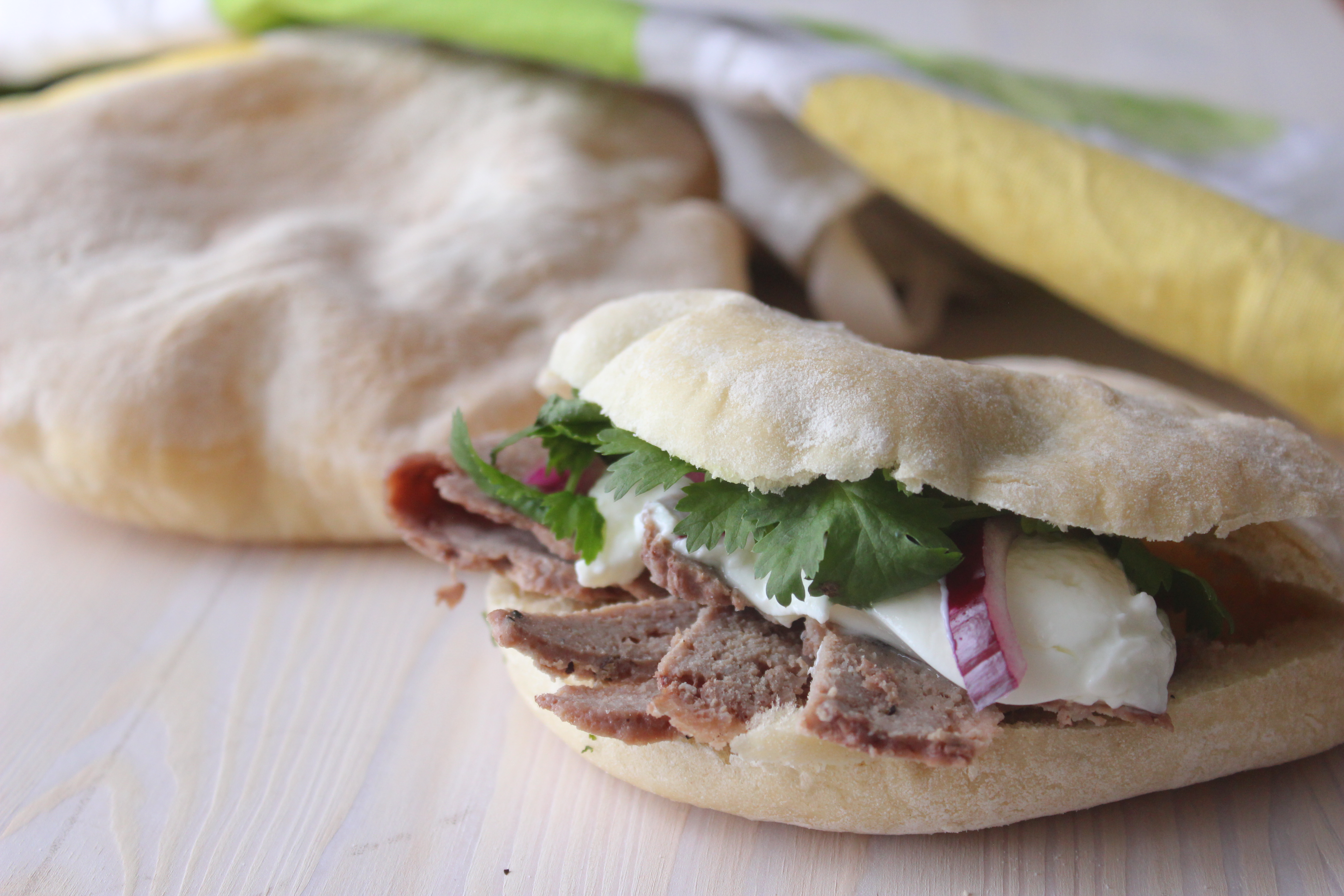 Pitaleivän sisään paketoitu kebab kaikilla salaateilla ja sörsseleillä on yksi pikaruokasuosikkejani, ja pelasti joskus kotiinkuljetettuna moniakin iltoja, kun ruokaa ei vaan jaksanut tehdä. Nykyisin emme - ehkä onneksi - asu yhdenkään pikaruokapaikan kotiinkuljetusalueella, joten kynnys lähteä hakemaan vastaavaa settiä on suurempi, kun sama se on sitten ryhtyä ruuanlaittoon, jos vaivaa täytyy kuitenkin nähdä. Mieltymys kyseiseen ruokalajiin ei ole kuitenkaan hävinnyt minnekään, joten välillä sitä on mukava tehdä itse, vaikka silloin ei kebabilla ole enää mitään tekemistä pikaruuan kanssa. Mikä sen parempaa sunnuntailounasta, kuin itse tehdyt pitaleivät, joiden väliin jokainen ruokailija voi lapata mieleisensä täytteet?
