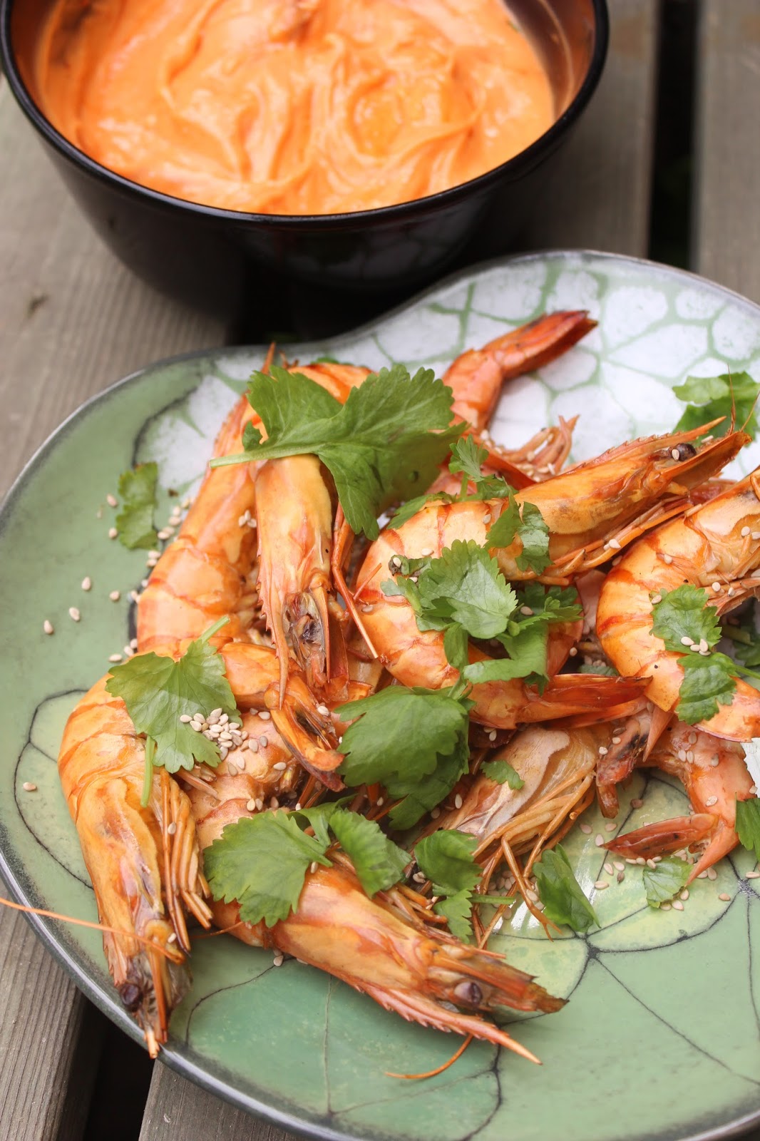 Kuka arvaisi, että lomallekin leviävien ruuhkavuosien keskellä löytyy aikaa nyhertää greippilusikalla hedelmälihaa limetistä? Sellaista löysin itseni kuitenkin tekemästä. Nyhertämistä seuraava ateria oli ihanan kesäinen, sellainen, joka tuo samaan aikaan mieleen menneet ulkomaanmatkat ja sopii kuitenkin Suomen suveen kuin nenä päähän. Aterian päätähti ei ollut kuitenkaan tuo nyhertämäni lime eikä edes nuudelisalaatti, johon sitä käyätin, vaan ihanan helpot ja maukkaat vartaat jättikatkaravun pyrstöistä. Käytin nyt valmiiksi putsattuja ja kypsennettyjä jättikatkaravun pyrstöjä, joten valmistukseksi jäi oikeastaan vain marinointi ja loppusilauksen antaminen grillissä, helppoa kuin mikä! Kypsät ravut toimivat hyvin, kunhan eivät unohdu grilliin liian pitkäksi aikaa. Rapujen kaveriksi tein raikasta nuudelisalaattia, jonne upposi riisinuudelin lisäksi reilu valikoima uuden sadon kasviksia, sekä yhtä suosikkidipeistäni, vihreää thaimaalaista chilidippiä, joka ei näytä juuri miltään mutta on grillatun kalan tai merenelävien kanssa aivan täydellistä. Vihreän chilin puutteessa dipistä tuli kyllä nyt ihan muun väristä, mutta se ei makua huonontanut. Suosittelen, suosittelen, suosittelen! ...
