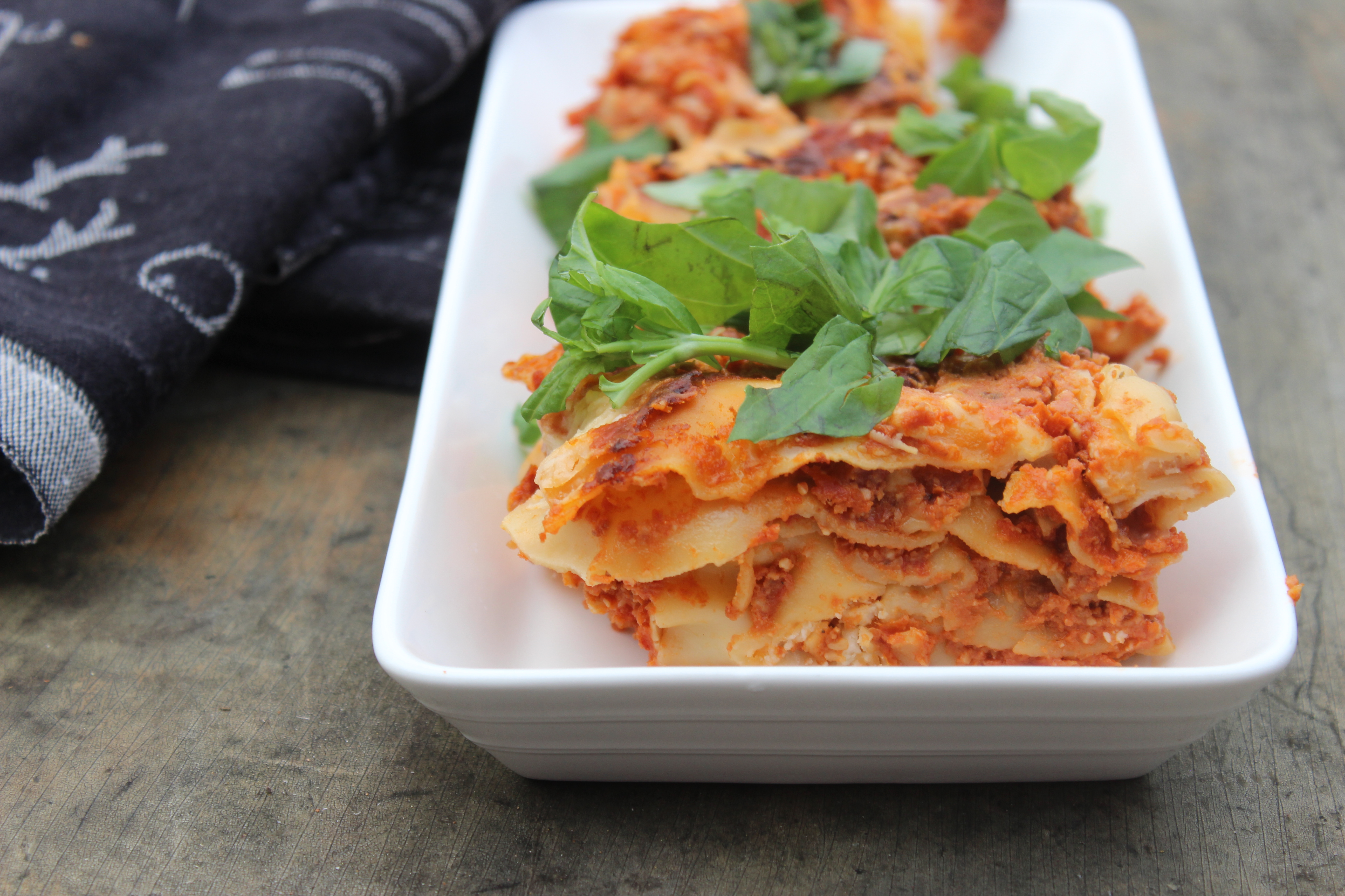Kesällä tein nopeaa ja ihan mahtavan hyvää punaista pestoa aurinkokuivatuista tomaateista ja cashew-pähkinöistä. Samaisesta kastikkeesta syntyi muutama päivä myöhemmin herkullinen arkipasta niinkin yksinkertaisesti kuin jatkamalla soosia tomaattimurskalla. Jotta käyttökelpoiset ideat eivät jäisi vain arkistojen aarteeksi, päätin tehdä samaista pestoa uudemman kerran. Nytkin jatkoin kastiketta tomaattimurskalla, mutta piilotinkin lopputuloksen lasagnelevyjen väliin yhdessä vuohenjuustoviipaleiden kanssa. En keksi paljon helpompaa versiota lasagnesta. Valmiin ruoan päälle hieman basilikasilppua ja siinä se on - viikonloppuateria arkiruoan vaivalla. ...