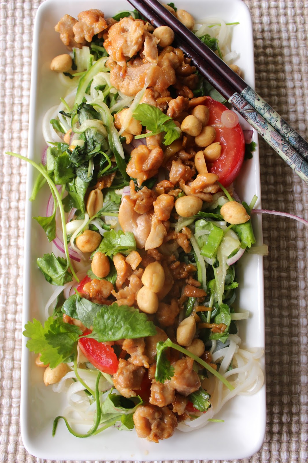 Broilerin jauheliha on raaka-aine, jonka olemassaolo unohtuu herkästi, vaikka se taittuu ihan valtavan moneksi. Itse käytän sitä eniten aasialaisvaikutteisissa ruoissa, kuten tässä wokissa, jonka ehtii tehdä arki-iltanakin töiden jälkeen, mutta joka maistuu myös viikonloppuna, varsinkin tammikuussa, kun keho kaipaa kasviksia ja makunystyrät edelleen vaihtelua pitkän joulukauden jälkeen. Meillä nuudelipannu valmistui loppiaisena, kun halusimme päästä helpolla ja käyttää aurinkoisen päivän ulkoiluun keittiöhommien sijaan. Nuudelit saavat makunsa maapähkinävoista. Maapähkinävoi jakaa mielipiteitä, mutta mielestäni tuolla tavoin mausteena muiden joukossa se ei pääse liian hallitsevaksi tai tunkkaiseksi. Jos haluat valmistaa ruoan nopeammin, voi kasvisten ja jauhelihan paiston moniajaa useammalla pannulla ja sekoittaa loppuvaiheessa. Itse kuitenkin tykkään tuosta yhden pannun vähävaivaisesta ja -tiskisestä taktiikasta. Ohjeen määrästä riittää hyvin kuudelle. ...