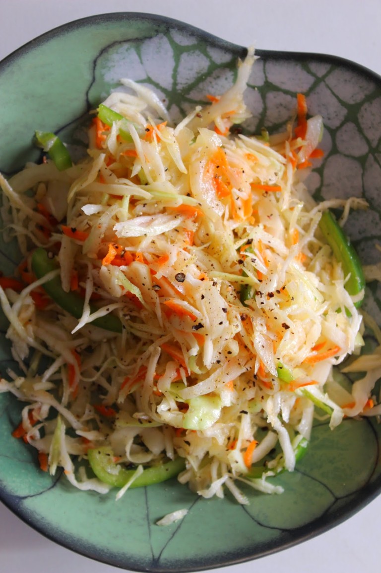 Olen valehtelematta tehnyt niin montaa erilaista kaalisalaattia, että resepteistä saisi varmaan kasattua keittokirjan. Tai ainakin keittokirjan korkuisen pinon reseptilappuja, koska ehkä pelkkiä kaalisalaatteja käsittelevä keittokirja olisi, no, vähän köyhä. Sen sanottuani, kaalista, tai oikeammin kaaleista, on kyllä kirjoitettu keittokirjoja, esimerkiksi Kalle Kirstilän Pieni suuri kaali (WSOY, 2011), jossa käsitellään monipuolisesti erilaisia kaaleja ja niiden valmistustapoja. Mutta palatakseni ihan nöyrään kaalisalaattiin, mietin hiljattain täälläkin ääneen, että ihan sitä peruskaalisalaatin reseptiä en ole blogissa tainnut julkaista. Korjattakoon se aukko siis. Tämä salaatti on siitä kiitollinen, että peruskonseptia (kaali, happo, öljy, makeutus, suola, mausteet) on helppo muunnella, happamuutta voi hakea välillä etikalla, välillä sitruunalla tai limetillä, makeutta hunajalla tai sokerilla, salaatin muita raaka-aineita jääkaapin sisällön mukaan ja niin edelleen. Näin siitä saa helposti muunneltavan kaverin milloin lihalle ja milloin kalalle, ja toisinaan vaikkapa pitaleivän täytettä. Allaoleva versio on vain yksi muunnelma, mutta sellainen, jota aika usein teen. Jujuna on, että kaalia ei pilkota veitsellä vaan juustohöylällä, jolloin suikaleista tulee todella ohuita ja meheviä (toki paremmatkin aseet sallitaan, sellaisten puutteessa minä vain satun käyttämään juustohöylää). ...
