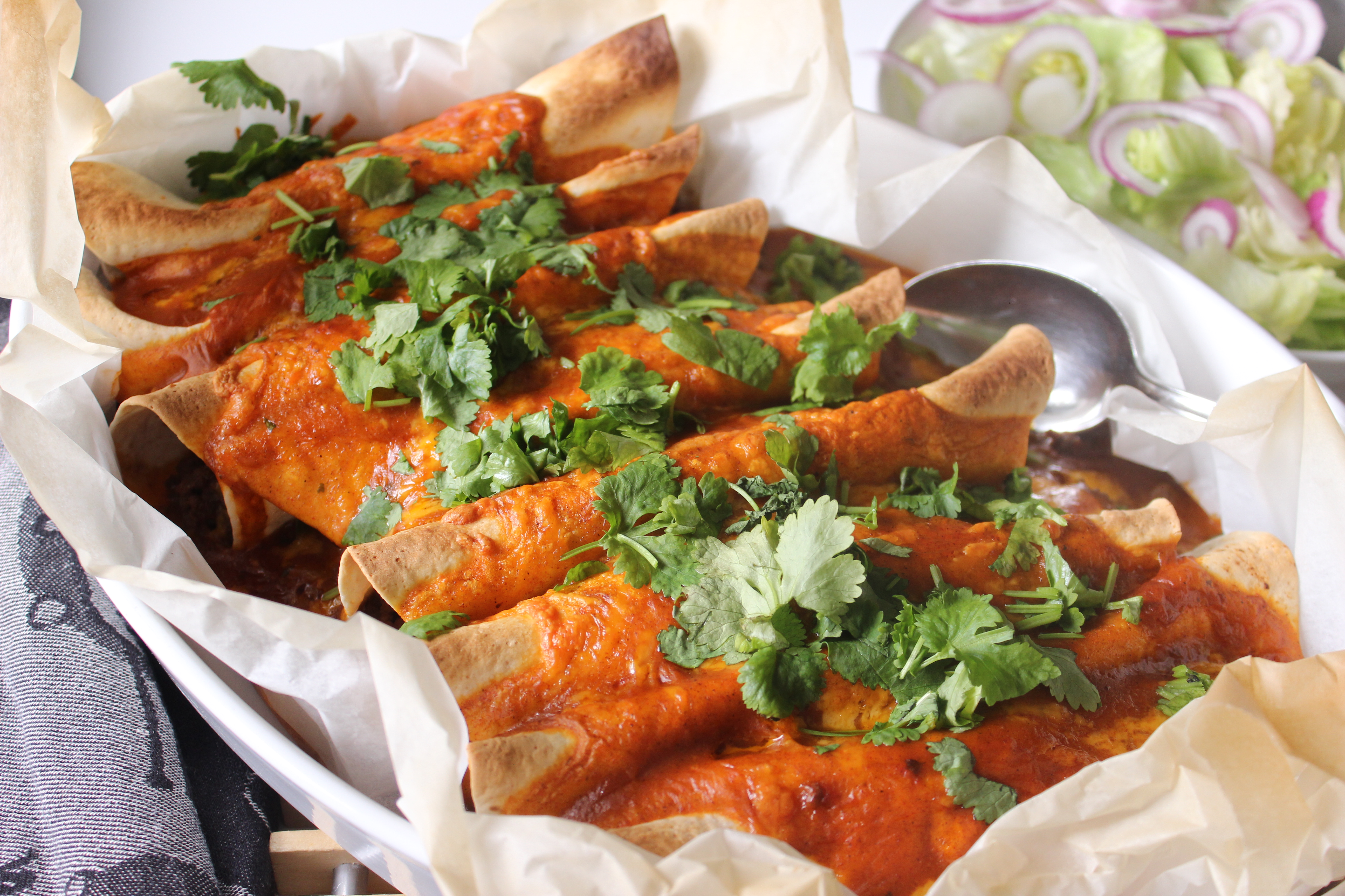 Kyselin tuttuun tapaan mieheltäni toivomuksia viikonlopun ruokalistalle, ja jossain ruokasovelluksessa piipahdettuaan hän ehdotti enchiladoja. Mielessäni oli joltiseenkin ajatus siitä, mistä on kyse, mutta yllätys yllätys, hakutermillä “beef enchiladas” löytyivät varmasti kaikki tortillalettujen olomuodot. Minua jäi vaivaamaan, miten enchiladat eroavat esimerkiksi burritoista, joten tein vielä hieman lisäkaivelua. Lukemissani resepteissä suurin yhteinen nimittäjä enchiladoille vaikutti kuitenkin oleva enchilada-kastike, joten siihen lähdin itsekin etsimään ohjetta. Opin, että olemassa on lukuisia erinimisiä variaatioita, jotka muokkaavat enchiladat ihan omiksi alalajeikseen, esimerkiksi tomaattikastikkeella päällystettyjä versioita kutsutaan entomatadasiksi. Lisäksi opin, että ihan perinteinen enchiladakastike ei saakaan punaista väriään tomaatista vaan ainoastaan chilistä. ...