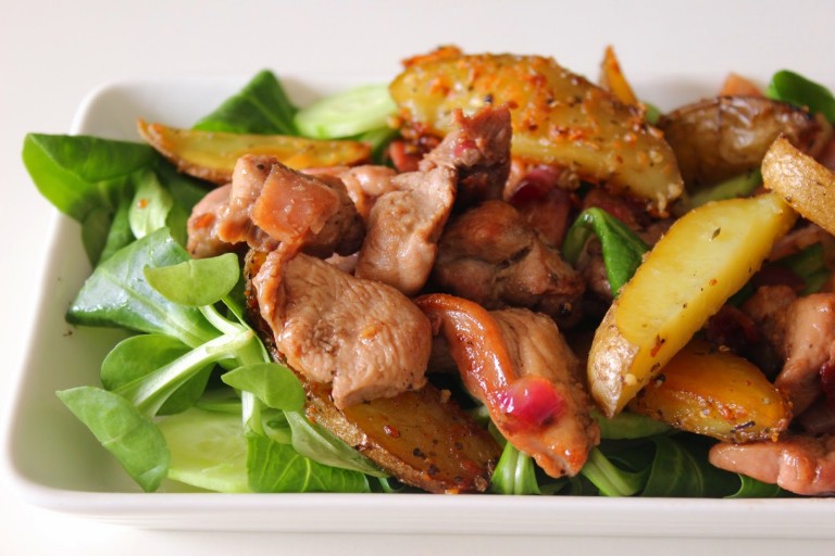 Tyhjentelin pakastinta jälleen viime viikolla, tällä kertaa kaivoin esiin viimeisen paketin fasaanin rintapaloja. Koska oli arkipäivä, päätin tehdä fasaanista jotain mahdollisimman vikkelää ja leikkasin fileet suikaleiksi, vaikka ajatus tuntuikin ensin hieman arveluttavalta. Samalla päätin toteuttaa myös toisen arveluttavan mieliteon, nimittäin tehdä linnusta hapanimelän annoksen granaattiomenakastiketta käyttäen. Hinku käyttää granaattiomenaa lähti hyllyssä odottavasta pomegranate sour -kastikkeesta (kiitos anoppi!), jolle olen koittanut keksiä sellaista käyttöä, mistä voisi kirjoittaakin. Salaatteihin soosia menee toki ihan sellaisenaankin. Pullon kyljessä olevasta tekstistä en ymmärrä halaistua sanaa, mutta jos tuote ei ole tuttu, kyseessä on siirappimainen mutta hapahko granaattiomenakastike jossa ei ole sellaista karkkista makua kuin monissa makeammissa granaattiomenasiirapeissa tai -reduktioissa. Kastike sopii hyvin erilaisiin marinadeihin ja glaseerauksiin. Kastikepohjaksi arvelin sen olevan hieman liian hapanta ihan sellaisenaan, joten lempeytin fasaanille tehtyä kastiketta vielä mustaherukkamehutiivisteellä. ...