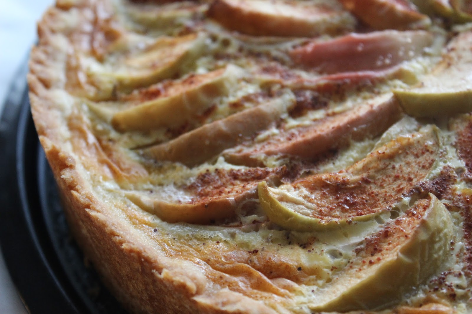 Ei syyskuuta ilman omenapiirakkaa! Toissaviikonlopun nimiäisiin tilasin täytekakun valmiina, mutta tämän sesongin kestosuosikin halusin leipoa itse. Etäisesti päässäni oli ajatus vaniljaisesta täytteestä, mutta olin hiukan pettynyt löytäessäni googlen avulla lähinnä reseptejä, joissa oli käytetty valmisvaniljakastikejauhetta. Uskon, että siitäkin saa aikaiseksi hyvää mutta halusin tehdä itse, joten rakentelin täytteen vaniljavanukkaan ohjetta soveltaen. Maukas tuli piirakasta näinkin. Juhliin tein kaksi versiota, tavallisen vehnäjauhoista leivotun piirakan sekä gluteenittoman vedoksen, johon sekoitin Semperin Finmix -jauhoa ja maizenaa. Ylimääräisten piirakkavuokien puutteessa tein gluteenittoman piirakan kertakäyttövuokaan enkä juhlissa uskaltanut nostaa sitä kauniimmalle tarjoiluastialle, koska pelkäsin piirakkapohjan hajoavan, niin kuin gluteenittomille leivonnaisille usein käy. Pelkoni oli kuitenkin turha, leikatessa yön yli levännyt piirakka pysyi oikein hyvin kasassa. Ohje sopii halkaisijaltaan 26 cm piirakkavuoalle. ...