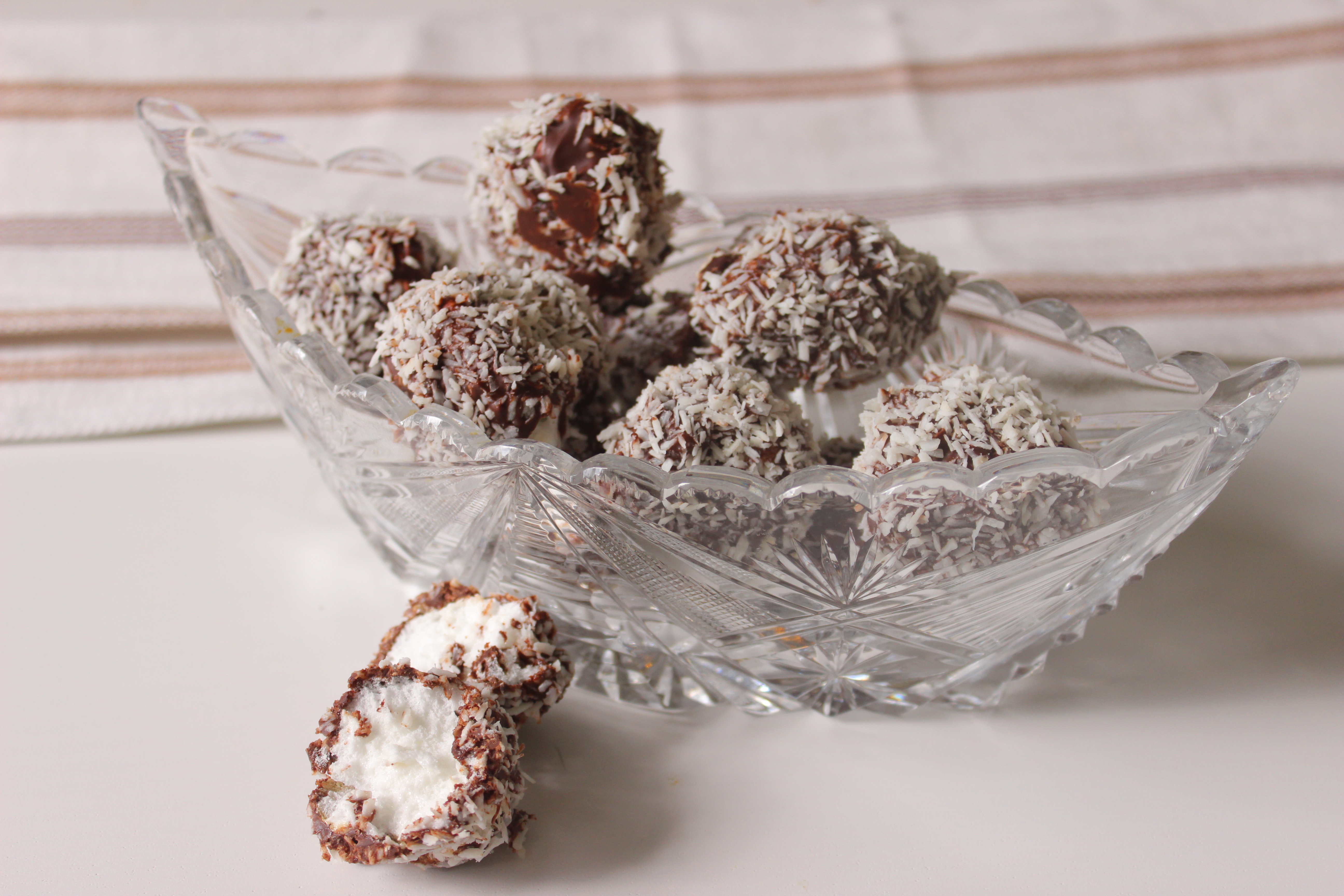 Jokunen päivä sitten päädyin korvieni välissä nostalgiatripille vaihto-opiskeluaikoihini Ruotsiin. Ei liene kuitenkaan yllätys, etten varsinaisesti miettinyt opintojani vaan ajatukseni keskittyivät ruokaan, tarkemmin ottaen kookospalloihin, jotka ovat tuttuja meillä Suomessakin mutta joita erityisesti länsinaapurissa on hyvinkin runsaasti tarjolla sekä kaupoissa että kahviloissa. Meidänkin opiskelijasolussamme kookospalloja ostettiin aina silloin tällöin makeanhimon yllättäessä. Nyt en ole niitä syönyt vuosikausiin, mutta nostalgisoinnista innostuneena päätinkin kokeilla valmistaa niitä itse. Netti on pullollaan kookospalloreseptejä, mutta löytämäni ohjeet olivat kaikki täyssuklaisten pallosten valmistukseen, kun taas itse halusin sellaisia, joiden sisällä olisi pehmeänmakea marenkitäyte. Lopulta tulin ajatelleeksi, että suomalaiset klassikot, suukot, ovat hyvin samantyyppisiä tuotteita ja suukkoreseptejä hakemalla löysinkin vinon pinon ohjeita. Tekemistäni saneli kuitenkin pieni kiire sekä raaka-aineiden rajautuminen siihen, mitä kaapista juuri tuolla hetkellä sattui löytymään. Pikaversion täyte on melko höttöinen, joten suklaassa ja kookoksessa pyörittely vaatii varovaisuutta, mutta onnistuu kyllä (jopa minulta) ja kookoshiutaleet peittävät kauneusvirheet. Oikeiden suukkojen valmistus saa vielä odottaa, mutta laitanpa tämän helpon pikaversion ohjeen teillekin vinkiksi. Tarjottava on myös gluteeniton, kunhan varmistat asian myös käyttämäsi suklaan osalta. ...