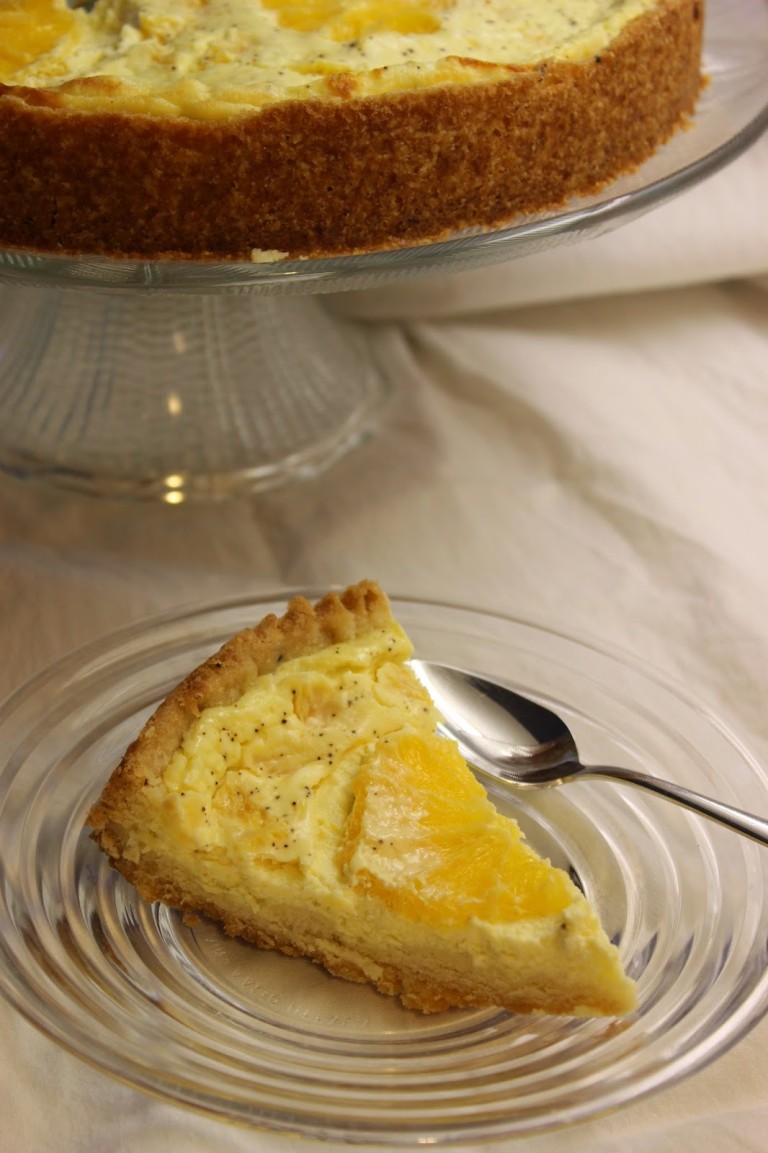 Erilaisten eksoottisten hedelmien keskellä arkiset appelsiinit pitävät pintansa vuodesta toiseen. Niiden sesonki on parhaimmillaan juuri nyt, eikä hintakaan huimaa päätä. Suurimmaksi osaksi syön appelsiinit ihan sellaisenaan, mutta tällä kertaa valmistin niistä raikkaan piirakan. En ole aiemmin tehnyt makeaa piirakkaa appelsiinista ja vähän mietin, vetääkö mehevä hedelmä koko piirakan muhjuksi, mutta vielä mitä, siitä tuli tosi hyvää! Yksinkertaisuus taisi jälleen olla valttia: appelsiini-tuorejuustotäyte täydentyi simppelisti vaniljalla ja pohja kardemummalla, molemmat mausteet sopivat mielestäni ihan nappiin appelsiinin kanssa. Piirakan maku on raikkaan talvinen, mutta samalla se muistuttaa jo lähestyvästä keväästä ja pääsiäisestä. Ihanaa, pitkän pimeän syksyn ja alkutalven jälkeen valoa ihan kirjaimellisesti häämöttää jo horisontissa. ...