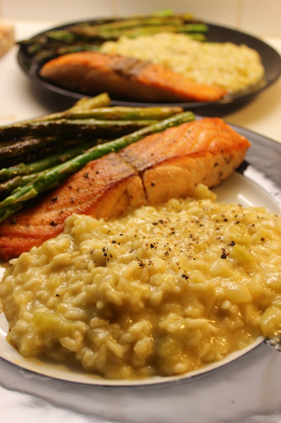 Taannoin arki-iltana koitin nälkäisenä ja väsyneenä kuumeisesti kaivella jotain syötävää kaappien uumenista - olin varannut ruuaksi pienen palan lohta sekä parsaa, mutta jotenkin mieli teki saada lautaselle vähän enemmänkin. Löytämäni risottoriisi, parmesan ja kuohuviini suuntasivat ajatukseni risottoon, ja jääkaapista löytynyt fenkoli vahvisti suunnitelman - fenkolirisottoa! Hyvää tuli, vaikkei erityisen kaunista. Ja vaikka arkiruuaksi väkertämistä vähän olikin, ei se jälkikäteen harmittanut :) Fenkolirisotto (kahdelle) 1,5 dl arborio-riisiä 1 sipuli silputtuna 1 fenkoli pieneksi silputtuna 1 valkosipulin kynsi hienonnettuna 1 lasillinen kuohuviiniä ...