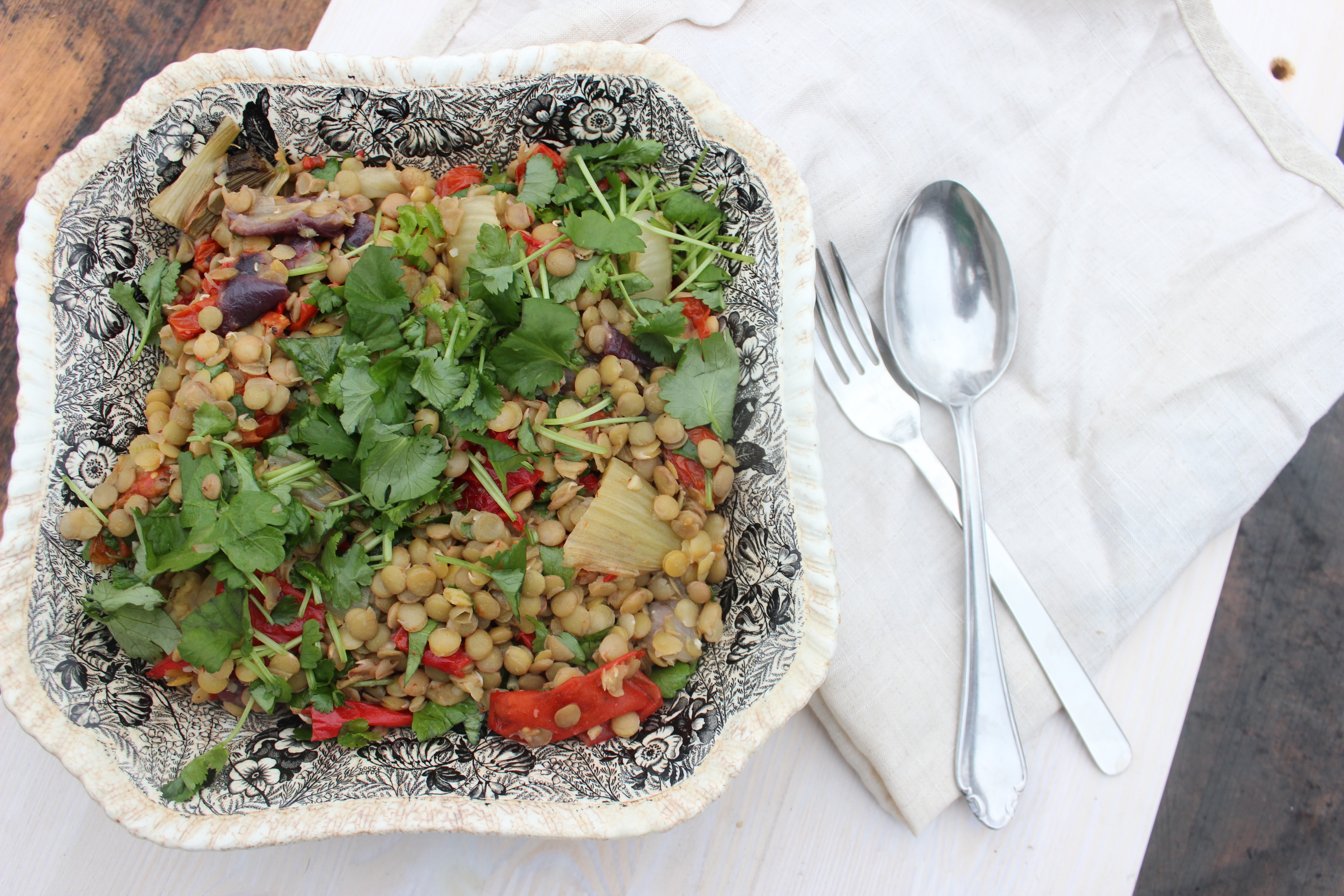 Minä sydän linssit - töissä lapan niitä salaattipöydästä lautaselleni ja kotona tungen niitä salaatteihin ja lisukkeisiin. Nyt valmistin linssejä Sydänmerkin kilpailuun, johon toivottiin reilusti kasvispitoisia reseptejä. Ilmoittautuessani lupasin vaatimattomasti tehdä kasvisruoan, joka maistuisi niin lapsille kuin aikuisille. Ja olisi tietysti nopea ja vaivaton valmistaa. Helppo juttu. No ei ole tietenkään, mutta meidän talouden realiteetti on, että kun aviomies syö mieluiten kasvisruokaa, perheessä on pieniä lapsia ja arkena kaiken on valmistuttava hetkessä, olisi juuri sellaisille resepteille käyttöä. ...