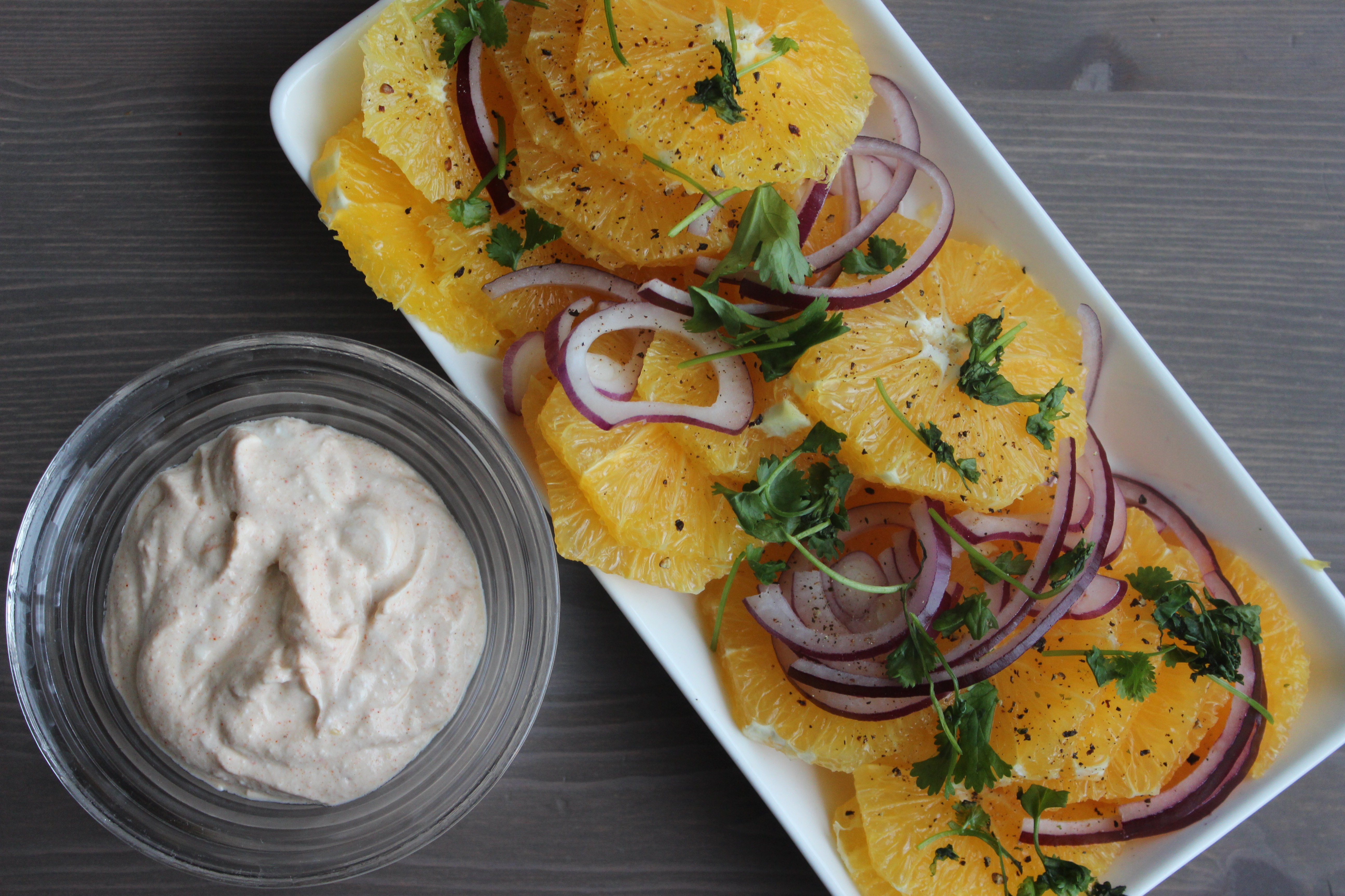 Talviaurinkoa: appelsiinisalaatti tahinikastikkeella