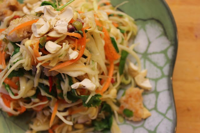 Keväiseen moodiin sopivasti testasin Soppaa ja silmukoita -blogin vietnamilaisen goi ga -kanasalaatin. Sitä on kehuttu hurjasti, ja ainakin Chez Jasulta löytyy versio samaisesta reseptistä. Itselleni vietnamilainen keittiö ei ole erityisen tuttu, mutta thai-keittiöstä inspiroituneena teemme isännän kanssa tuon tuostakin kaikenlaisia salaatteja, joiden autenttisuuden osumatarkkuus joko Thaimaahan tai naapurimaihin todennäköisesti vaihtelee. Päällisin puolin tämäkin ohje vaikutti hyvin samantyyppiseltä kuin aiemmin tehdyt salaatit, mutta ilmeisesti mittasuhteet olivat sen verran erilaiset, että maku oli kuitenkin ihan omanlaisensa.