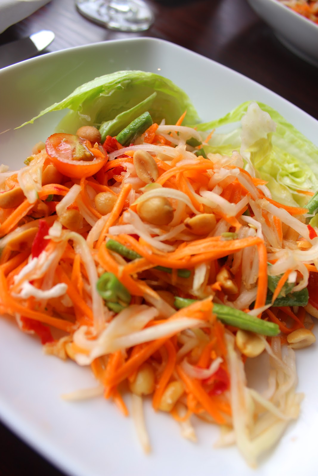 Mutta mitähän sanoisin ruuasta? Alkupalaksi otettu papaijasalaatti oli reiluhko alkupala-annos, mistä tietysti ahneet ruokailijat kiittävät. Plussaa myös siitä, että potkua oli salaattiin laitettu keskimääräistä isommalla kädellä, mutta valkosipulia jäin kaipaamaan. Tuomiona, ihan kelpo papaijasalaatti, muttei lajinsa mehevimmän kärjen edustaja.