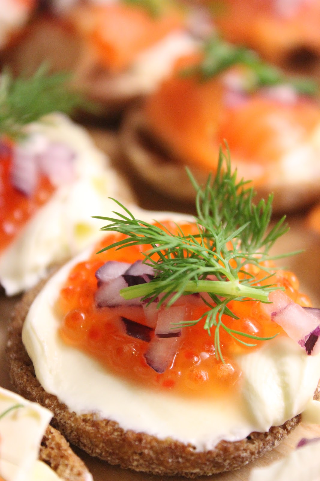 Nämä pienet naposteltavat sopivat omaksi ateriakseen kuten meillä joulupäivänä, mutta myös viimeisten jouluherkkujen jämien rääppimiseen välipäivinä. Ne toimivat myös nopeana vierastarjottavana, jos ovikello sattuu välipäivinä soimaan tai jos uudeksi vuodeksi kaipaa suolaista kuohuvan pariksi.